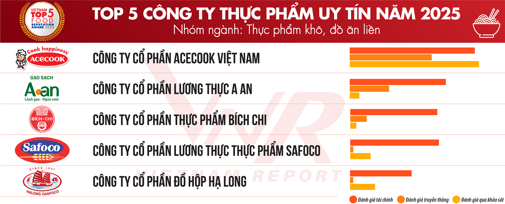 Ngày 22/09/2025, Vietnam Report chính thức công bố Top 10 Công ty uy tín ngành Thực phẩm - Đồ uống năm 2025. Lễ tôn vinh các doanh nghiệp tiêu biểu sẽ diễn ra vào tháng 10/2025 tại Hà Nội.